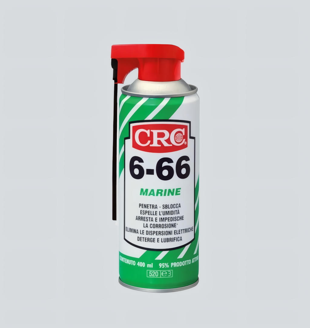 Spray multifunzione CRC 6-66 Marine che protegge dalla corrosione, respinge l’umidità e lubrifica componenti in ambiente marino. €8.50