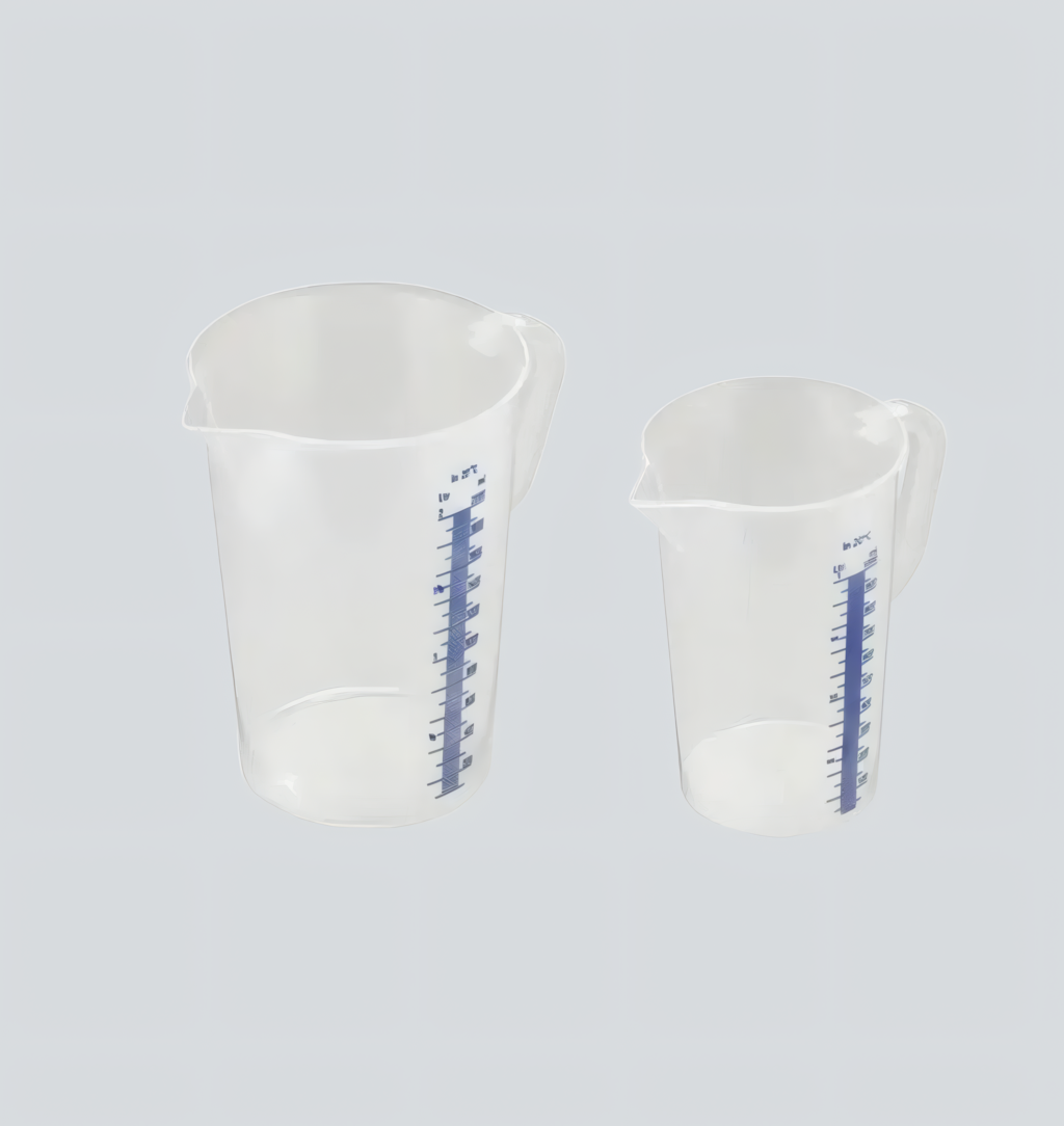 Caraffa graduata CORCOS in plastica resistente da 3 e 5 litri, ideale per miscelazioni precise di vernici, resine e prodotti tecnici.