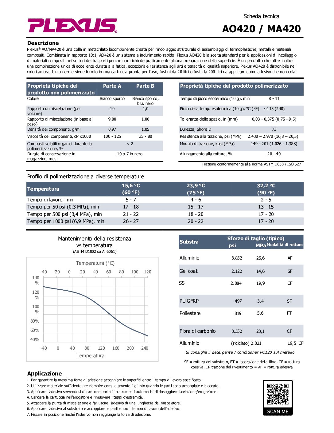 compositi. Combinata in rapporto 10:1, AO420 è un sistema a indurimento rapido. Plexus AO420 è la scelta standard per le applicazioni di incollaggio